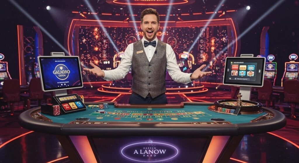 Game hosts work from dedicated studios designed for game show-style broadcasts. Their main job isn’t managing chips or enforcing rules – it’s making sure each round flows smoothly and that you know what’s happening.